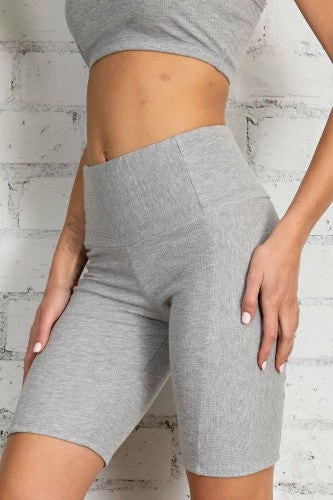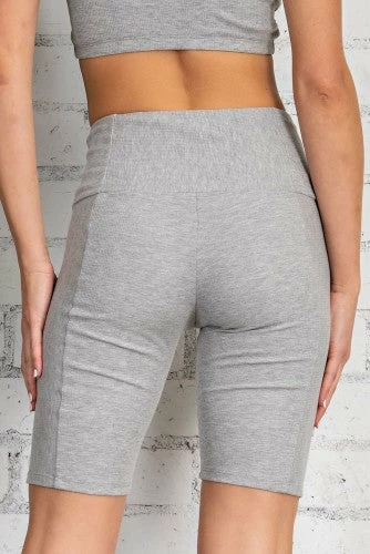 Rib multi-way detail textured biker shorts with hi-waist elastic waistband. True to size!