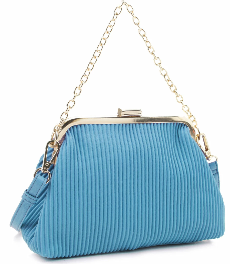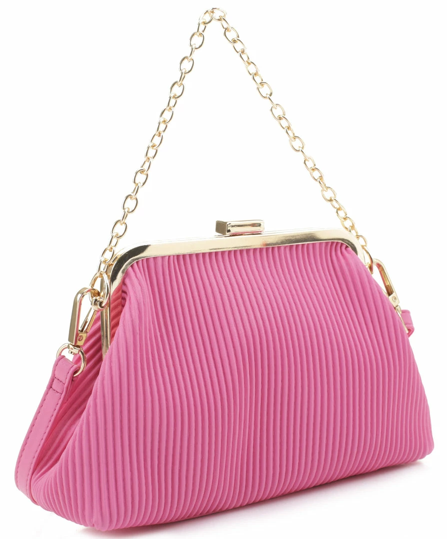 Classy ribbed clutch with a gold clasp and gold chain accent. Also comes with a crossbody strap!