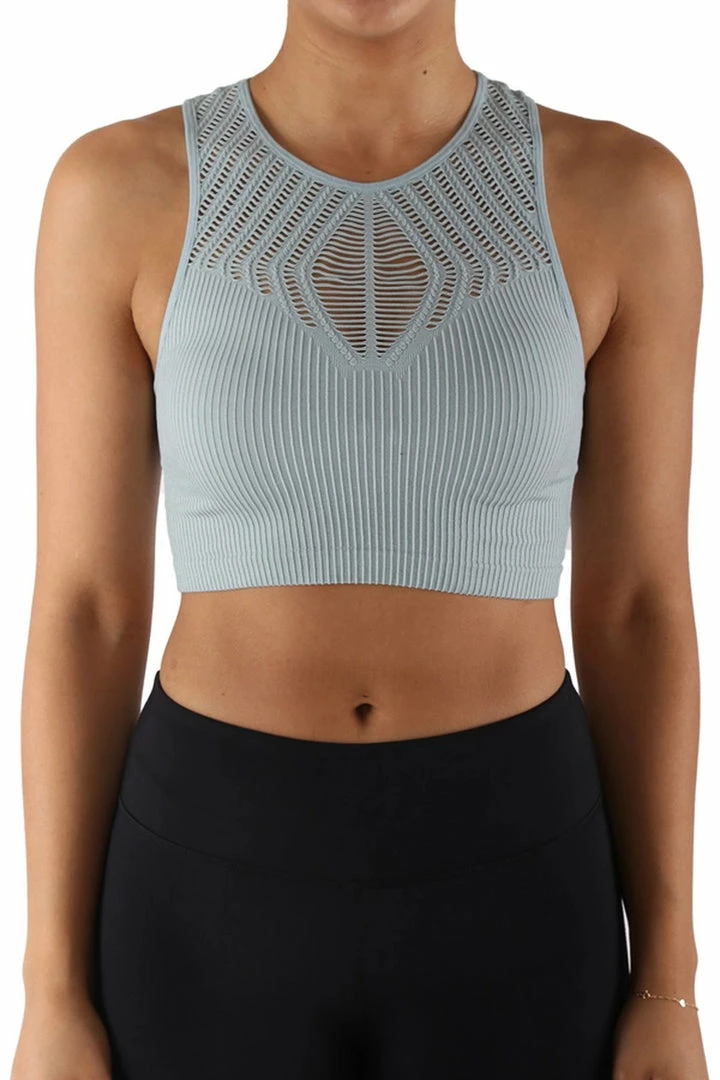 Beautiful bralette with cutouts and racer back. Soft and flexible. Comes in Teal or Black