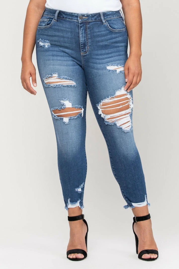 We are obsessed with these distressed skinnies!! Featuring a destructed front, dark wash, and ankle length frayed hem, these super cute Cello Jeans Distressed Cropped Skinny Jeans for Women in Dark Wash are perfect for year-round wear. Kelly and Tonya feel that you need to go up a size.Â