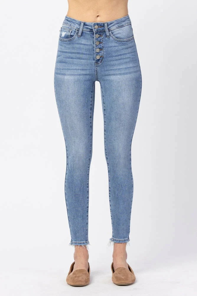 Judy Blue high-rise button fly skinny jeans. No distressing. Light wash color. 5 button fly. True to Judy Blue size.