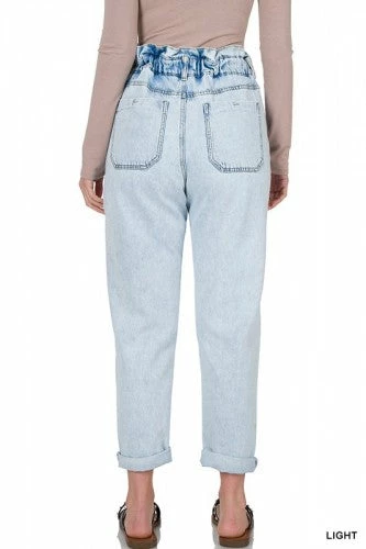 Clothing Zenana Paperbag Waist Barrel Jean- DOP-1595AB