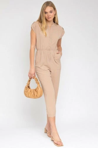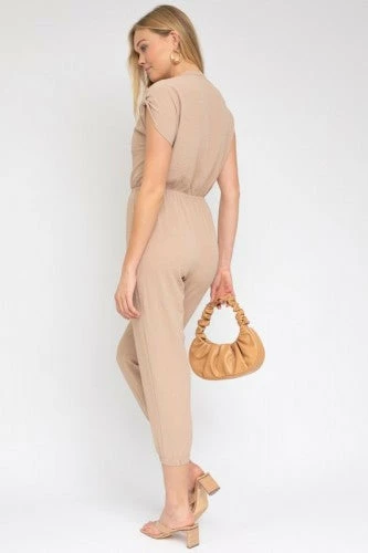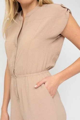 Short dolman sleeve button-down jumpsuit with pockets! True to size!