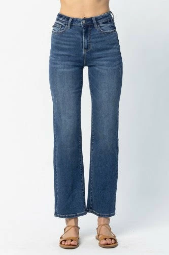 Judy Blue high waist straight leg dad fit jean. No distressing. Medium wash.