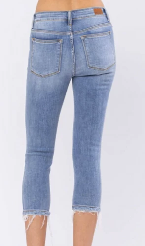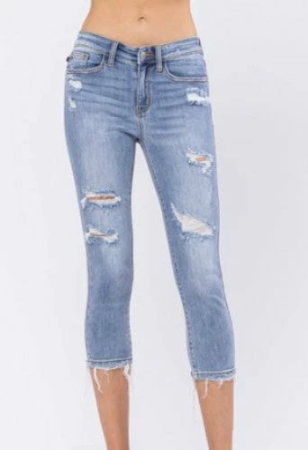 These are a light wash and have the Judy Blue stretch we all love! Mid-Rise with Distressing and classic 5 pocket design (Distressing can vary)