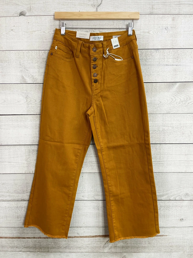 Judy Blue high rise wide leg crop jeans. Nod distressing. Frayed hem. True to size!