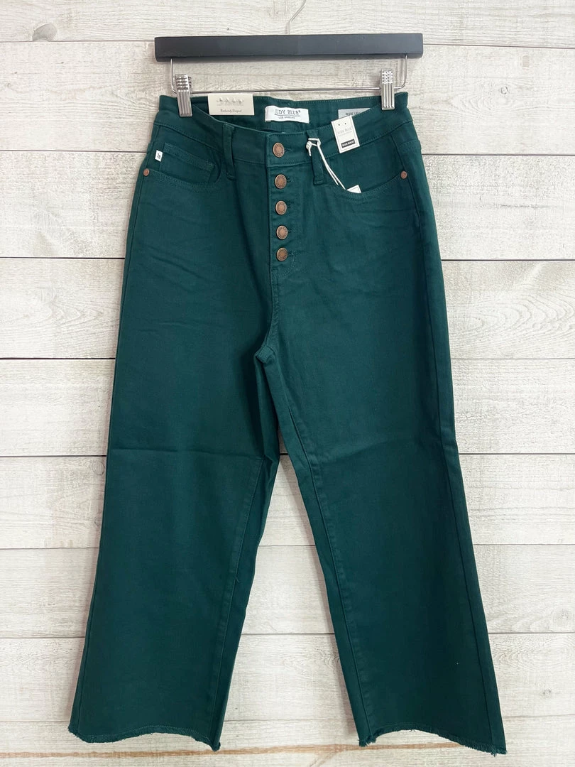 Judy Blue high rise wide leg crop jeans. Nod distressing. Frayed hem. True to size!