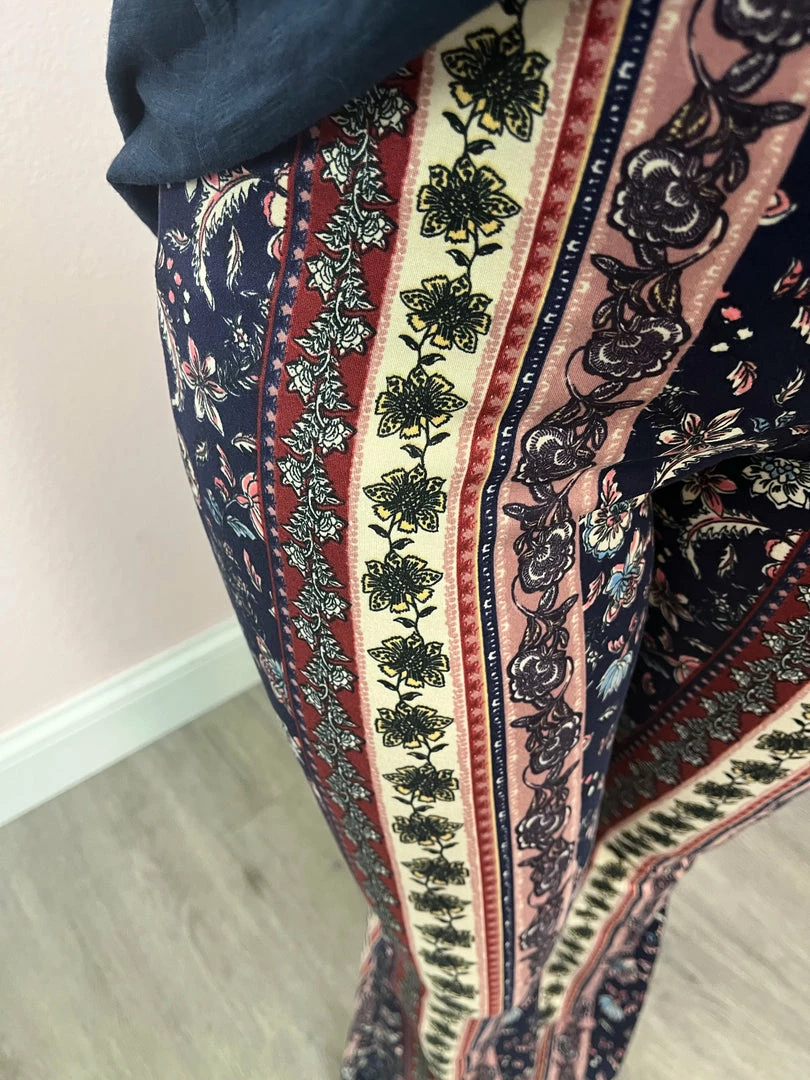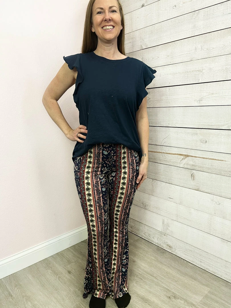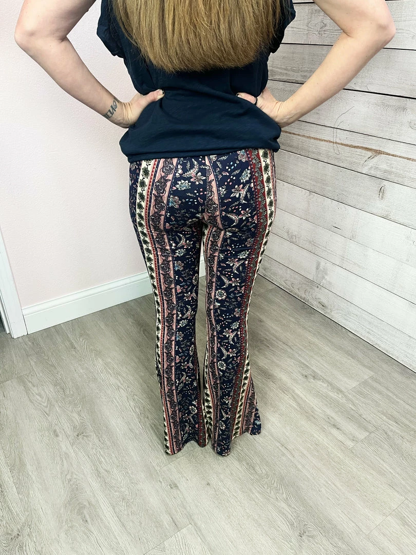 Mono B Clothing “Flirty Flare” Paisley Flare Leggings- Navy