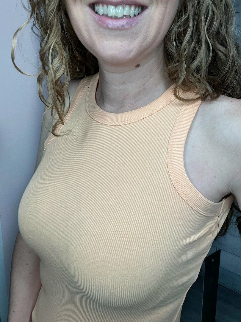 Everybody loves a versatile tank top! Crafted from a rayon-spandex blend fabric with micro ribbing, this tank top has a wide, racerback design, a rounded neckline, and a fitted silhouette. Four-way stretch.Â