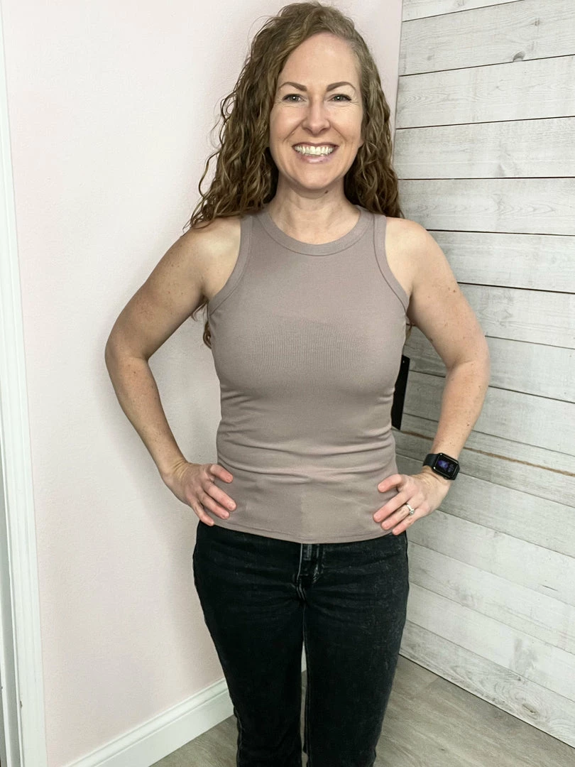 Mono B “Work It Out” Athleisure Tank Top- Dusty Lavender
