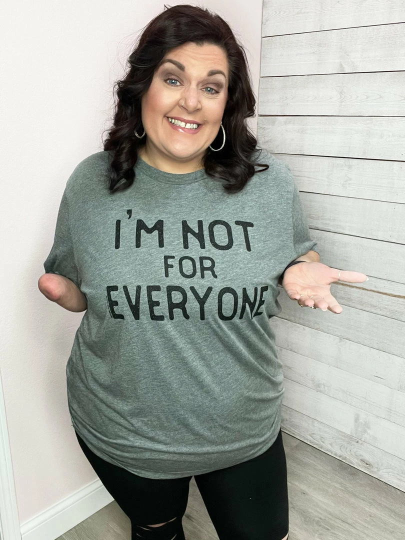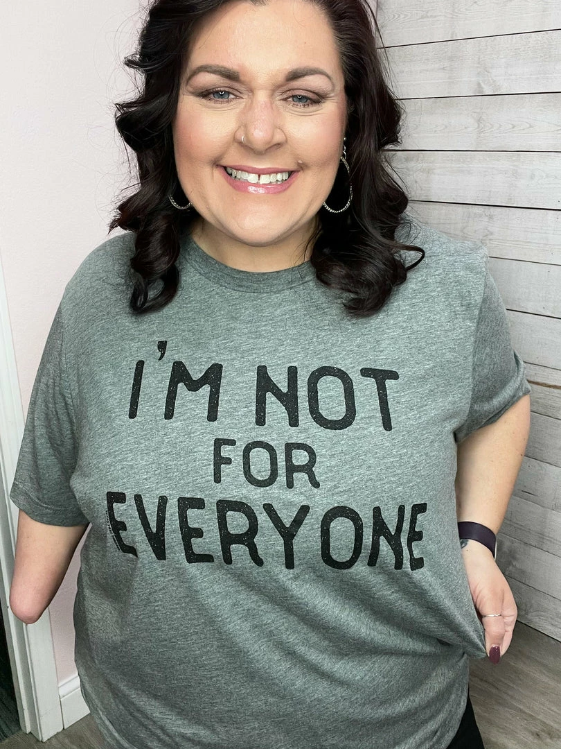 Black graphic print that says “I’m Not For Everyone” on a grey Bella Canvas t-shirt. True to size!