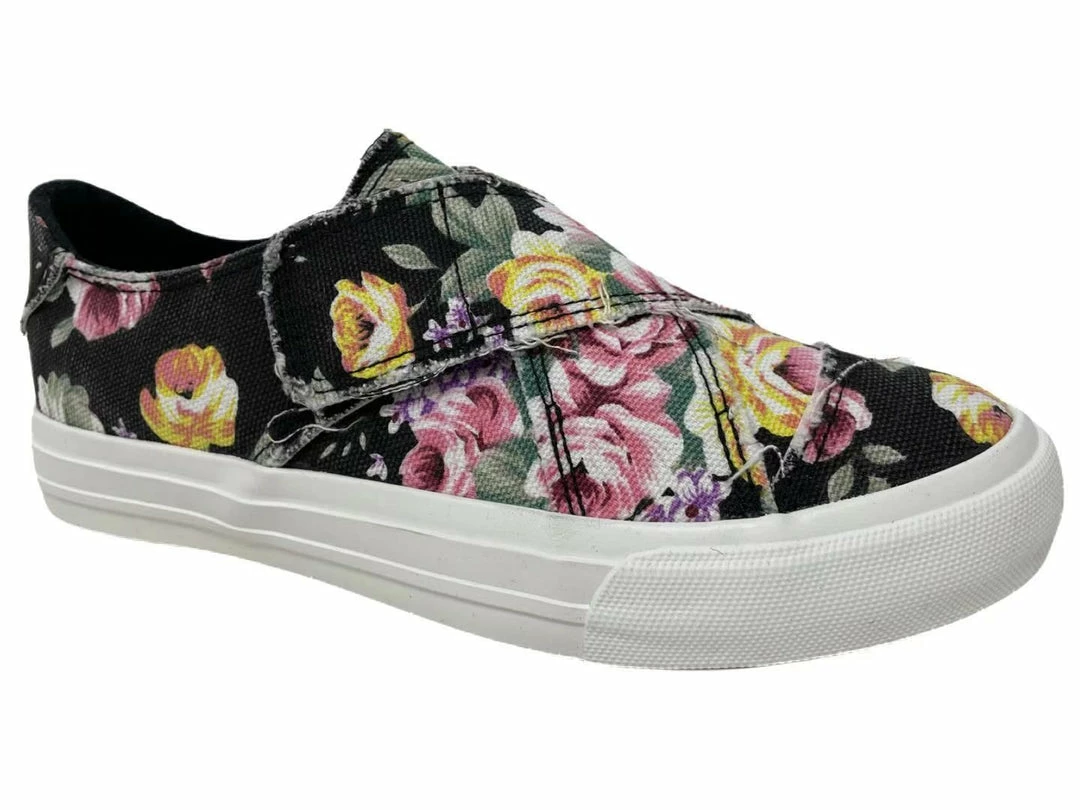 Check out these adorable floral sneakers! These shoes feature all the fabulous details you’re looking for such as a slip-on body style for easy access, distressed edges, and a Velcro patch along the top in leu of shoe strings.