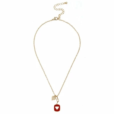 Gold Layered and Red Enamel Heart 16″-18″ Necklace