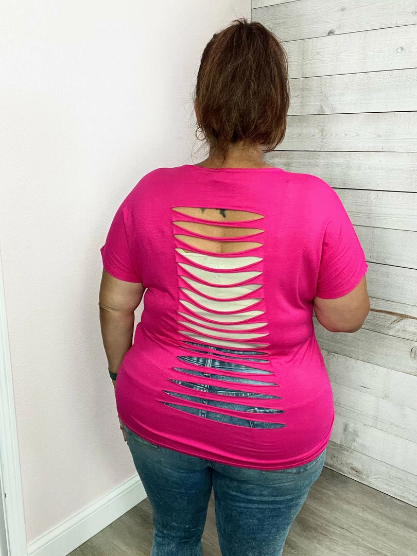 White Birch Clothing “Set You Free” Laser Cut Top- Pink
