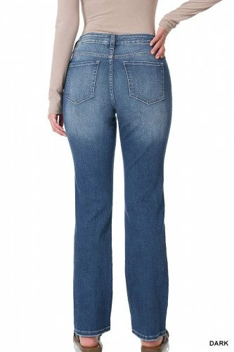 Zenana straight-leg jeans. Dark wash and no distressing. Fabric Content: 98% Cotton, 2% Spandex